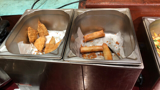 大体食べ終わり、2回目はカレーと麻婆豆腐を取ってこようと料理の所に行ったら愕然、ランチタイムは15時までということで全て片付けられていました。飲み物も一切取っていなかったので水だけでもくれとお願いして水は貰いました。