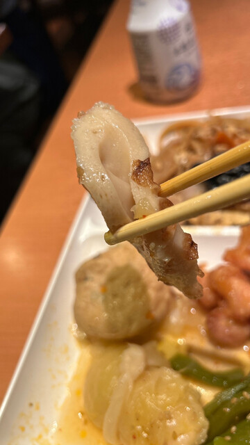 大体食べ終わり、2回目はカレーと麻婆豆腐を取ってきました。カレーは具沢山ということでニンジンなんかは大きく豚肉もたっぷり入っていて、辛くないお母さんのカレーの味で私的にタイプです。辛いのが苦手なので麻婆豆腐は少しだけにしました。