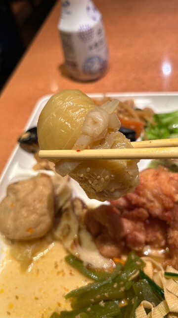 大体食べ終わり、2回目はカレーを取ってきました。カレーはじゃがいもとニンジンがデカ切りで挽肉入り、あまり辛くないお母さんのカレーの味で私的にタイプです。ちなみに辛いのが苦手なので麻婆豆腐はパスしました。