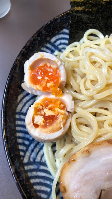 つけ汁の粘度自体はあまりなく王道の豚骨魚介の味、このつけ汁を嫌いな人はまずいないと思います。麺は中太ストレートで流石に製麺所直営と感じるモチモチで小麦を感じられる旨いヤツです。