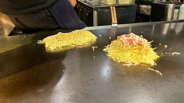 店員さんが手際よくお好み焼きを焼いているのを見ているのも楽しく10分程で私の前にお好み焼きが提供されました。