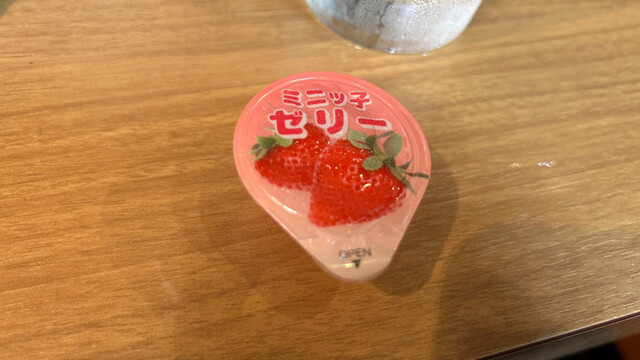 13時半到着で客の入りは6割程、目の前が鉄板のカウンターに案内されました。そばWまで無料ということなので当然Wで注文するとお冷と一緒にミニッ子ゼリーも頂けました。