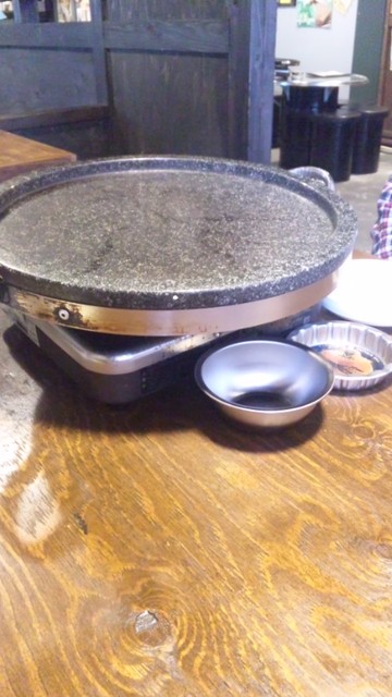 斜めになっている鉄板(石板?)にて脂を落として食べる