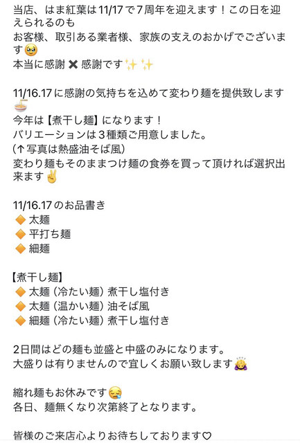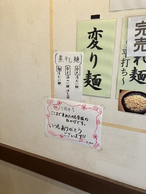 2024/11/16 7周年限定メニュー煮干し麺油そば風(温かい太麺)