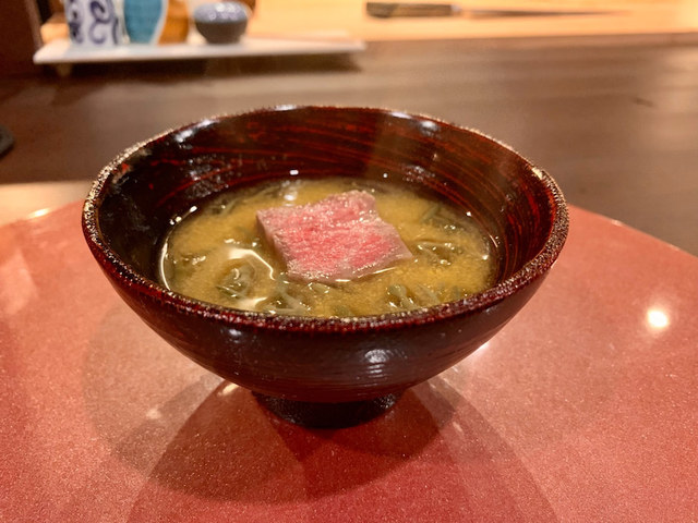 〆の和牛そぼろの出汁茶漬けとあおさとしじみの味噌汁