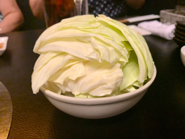 ・長崎ランボソ 山形のチシャ菜や卵につけてここで私はご飯を注文して、焼いたお肉をのせ、たまごをのせる 卵チャレンジ今回は失敗したので写真無しで…