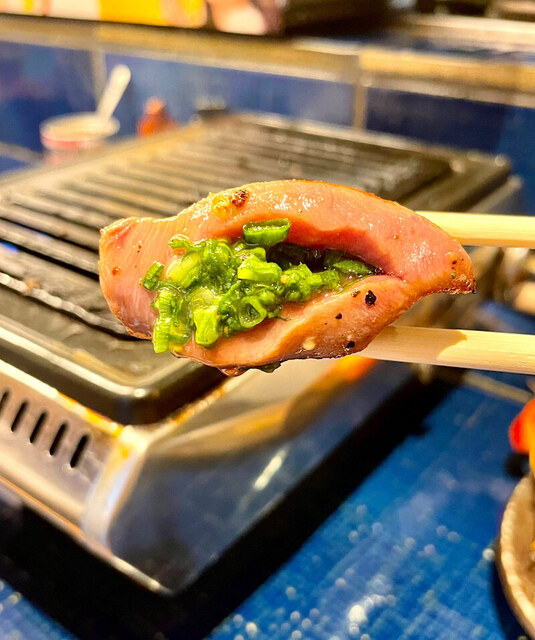 ■厚切りネギ塩タン 1切れ 280円 牛タンをねぎを中にサンド!これをじっくり焼いて、いただきまーす