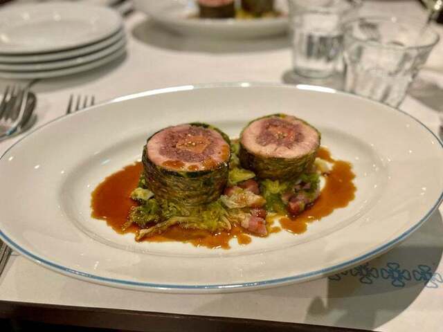 トリュフとフォアグラを鶏でぐるっと巻いた、手間がすごくかかってる