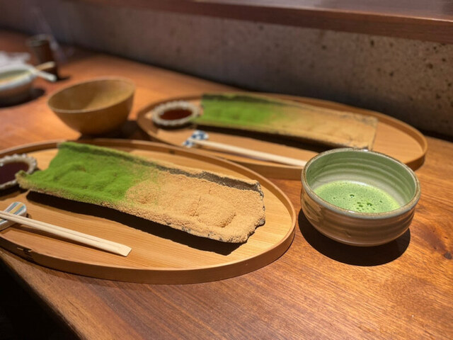 目の前で力をこめて、丹精に作られたわらび餅きな粉たーぷりかかってて、柔らかくてとろーりめっちゃうまーい!