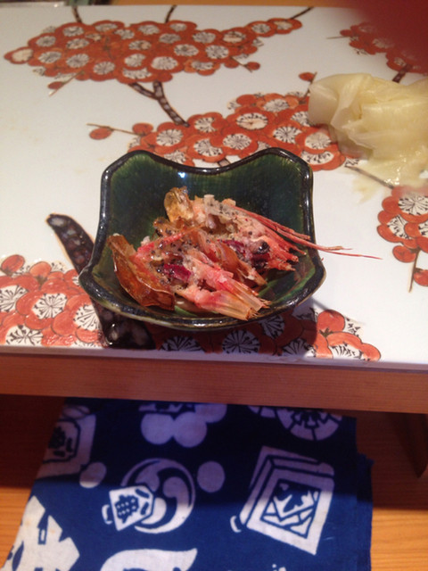 まずはプレモルの生を頂き、飲兵衛の友人と豊富なラインアップの日本酒を色々と楽しみながら、烏賊の雲丹載せ、バイ貝、カワハギ、白エビ、鯵、トロなどに、山芋の巻物などお任せの五千円の握りを頂きましたが、どれも期待を裏切らない味でした。
