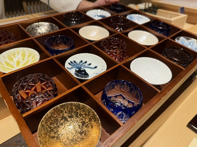 序盤から鮑、子持ち鮎、蛸の炊いたのと秋の味覚が勢揃い。火入れの加減がどれも絶妙で、秋刀魚は舞茸と菊の花を添え、酢橘の香りが軽やかに抜ける。茶碗蒸しは鯛の酒盗を使った餡がかかっており、肌寒い季節にぴったり。お酒好きにはたまらない味わい。