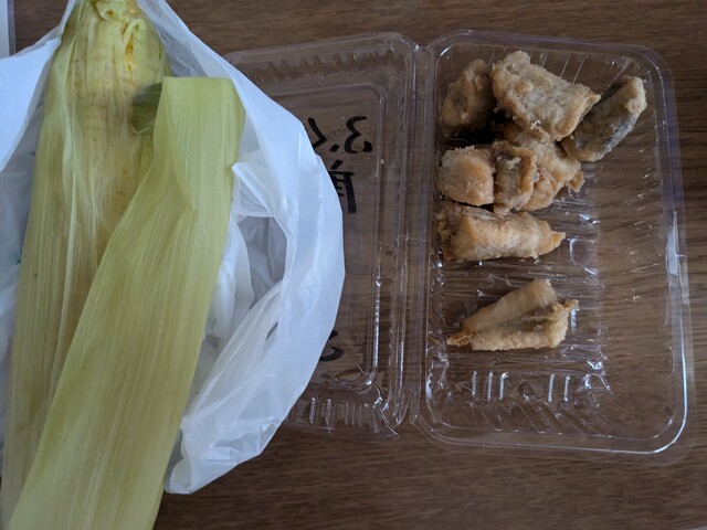 茹でとうもろこし ふぐの唐揚げ