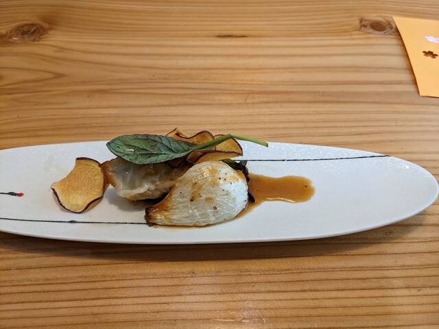 ふぐのムニエル 玉ねぎ さつまいもチップス