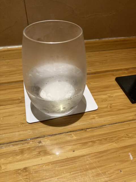 ここで、一白水星特別純米ささにごりを追加注文する。ガラスの徳利で提供される。こちらの酒は爽やかな中にしっかりとした旨味が感じられ、好みの味わいである。