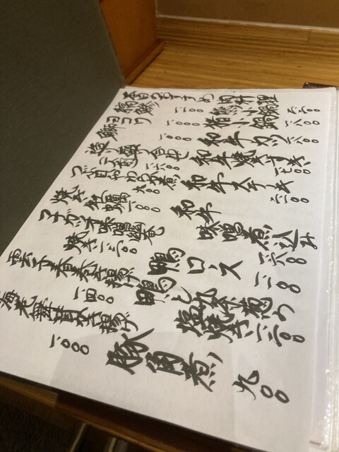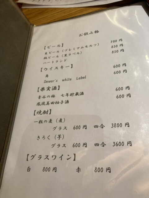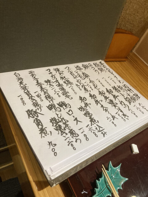 カウンターが八席と他にいくつか部屋がある模様。カウンターに案内され、まずはメニューを見る。アラカルトメニューも充実していて、どれも旨そうなものばかり。ただ、今日は初めての訪問ということで、コースをお願いしていた。