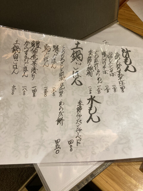 いつものカウンターに案内される。落ち着く。まずはメニューを見て、伯楽生純米吟醸をお願いする。氷を張った鉢に徳利が入れられて供される。最初の一献は、可愛い女将さんのお酌で頂く。香り高くすっきりとした美味しい日本酒である。