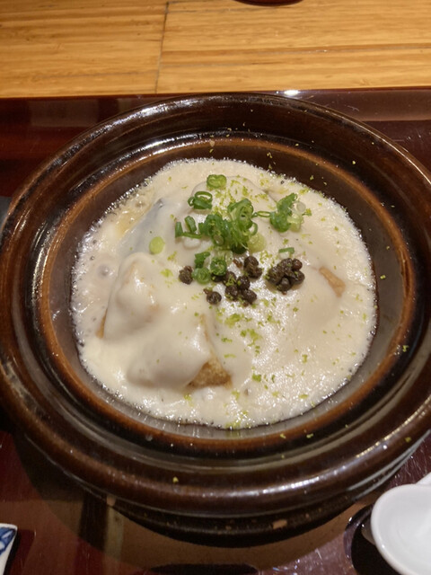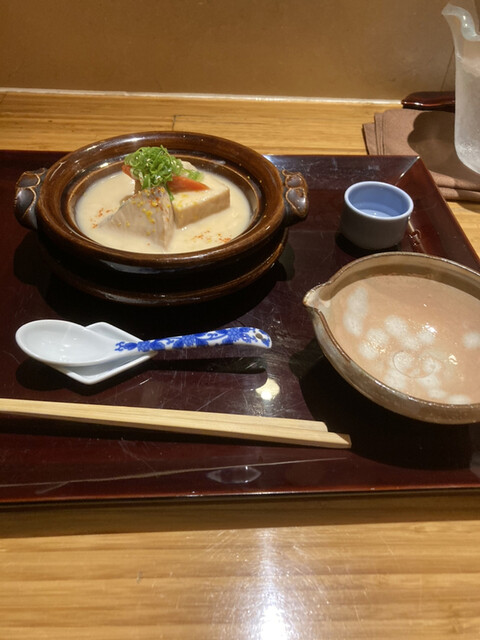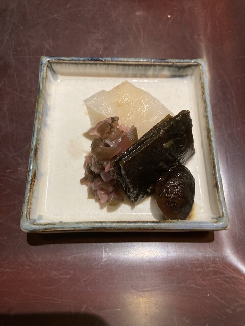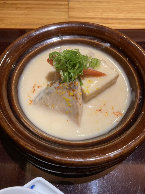 次はこちらの店の名物である鍋。この日の鍋は、鰤大根。酒粕と白味噌を合わせた出汁で、鰤と大根、そして豆腐を煮たもの。鰤のしっかりとした旨味が大根や豆腐に染み渡り、その旨味が酒粕により、こっくりとした味わいに昇華している。出汁まで残さず頂いた。