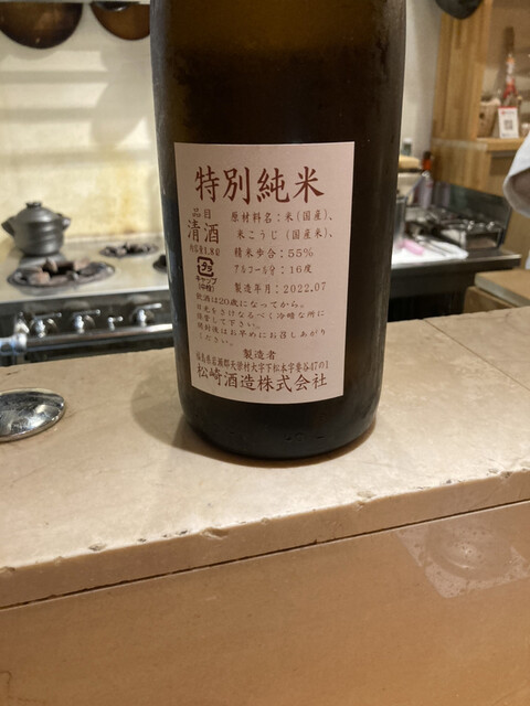 ここで日本酒が無くなったので。森のくまさん59Takachiyo限定流通酒を頂く。爽やかなタッチと軽い飲み口、ちょっとドライで爽やかで切れもいい。料理によく合う。