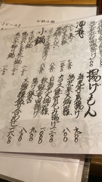 子持ち鮎甘露煮は鮎の身や卵の旨味をしっかり感じられ、公魚天ぷらや小芋は揚げたてで素材の旨味がよくわかる。つぶ貝やわらか煮や鱈子煮付けは、旨味たっぷり。銀杏豆腐は舌触りが心地よく、あん肝は濃厚。どれも美味しく、日本酒によく合い、日本酒が進む。途中で日本酒が無くなったので、浅間山秋おろし純米吟醸一合を追加注文する。こちらの酒は、さっぱりしていて柑橘系の酸味も漂い、料理に合わせやすい。