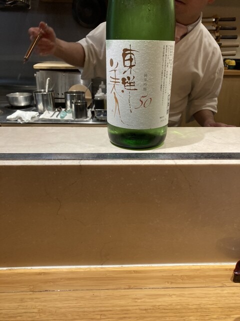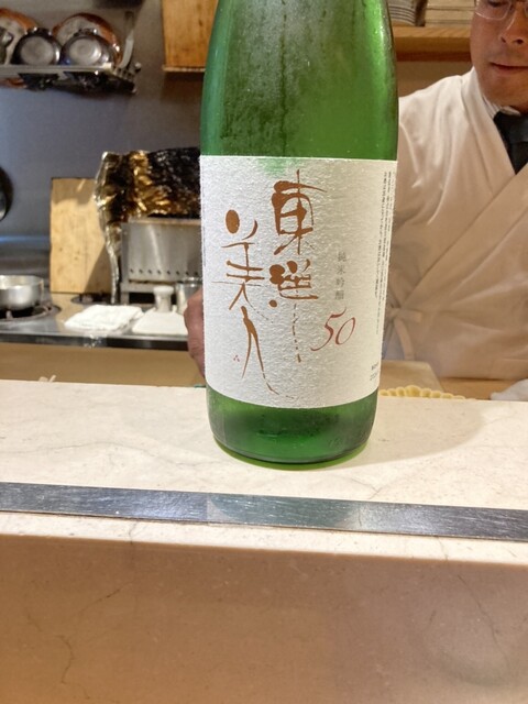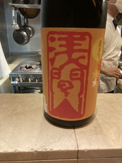 途中で東洋美人純米吟醸を頂く。バランスのいい美味しい日本酒で、好みの一つ。八寸の料理によく合う。