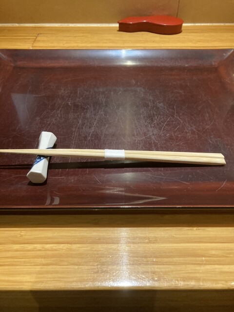 向付は、桜鯛と横輪。味噌が添えられている。大将曰く、鯛に味噌を少しだけ付けて食べるとよいとのこと。お勧めに従い、鯛に味噌を付けて頂く。鯛の深い旨味に味噌のまろやかな塩味がよく調和しており、驚くほど美味しく頂いた。横輪の方は、とろから赤身のグラデーションが美しく、程よい脂の乗りでこれまた美味しく頂けた。