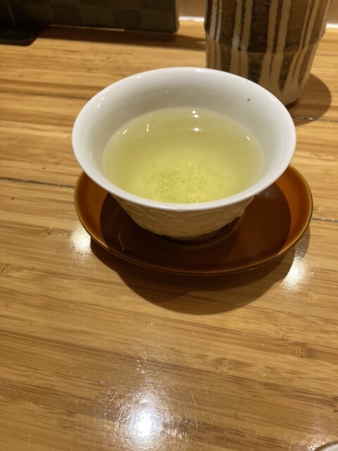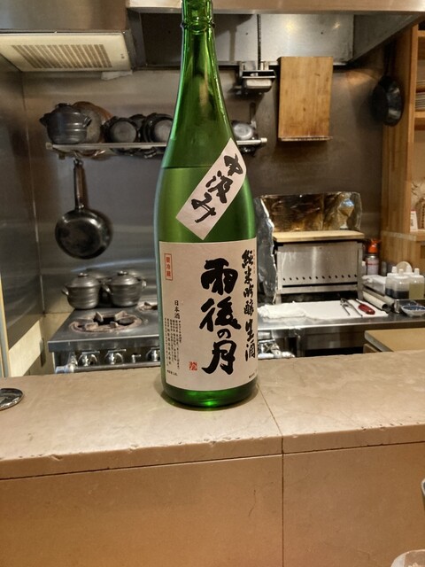 まずは、雨後の月純米吟醸をお願いする。錫製の竹筒で供され、可愛い女将から盃に一献注いで頂く。フレッシュな香りで甘味と酸味のバランスがいい旨い酒。料理に対する期待がたかまる。