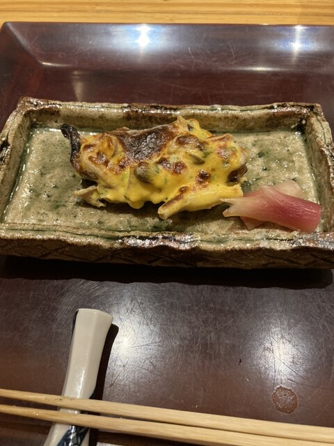 八寸を食べ終わると、焼き物が用意される。鰆の西京焼き、菜花に蛍烏賊のなめろう掛け。旨味が強い鰆に西京味噌の優しい甘みがして、これまた品よい美味さが味わえた。そして、蛍烏賊のなめろうがとても濃厚な味わいで、日本酒が進んで仕方がない。これだけでも立派な酒肴になる。