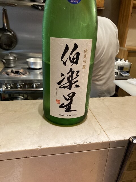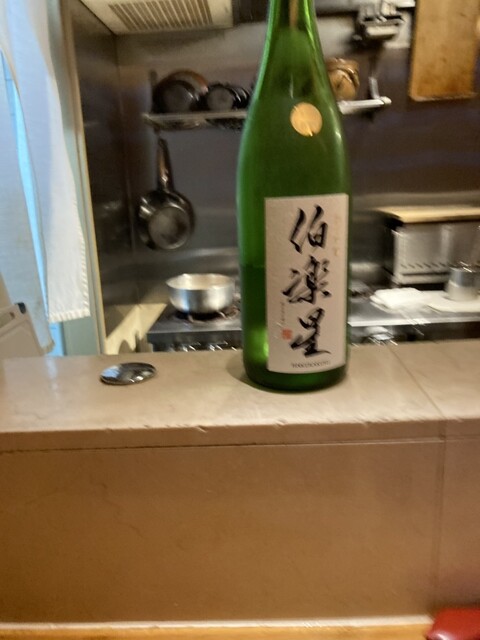 ここで、日本酒伯楽生純米吟醸を注文する。すっきりして、食中酒にぴったりの酒。
