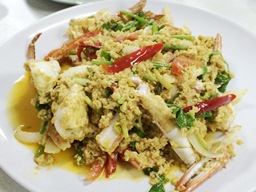 「カオパッドプー大盛り」「プラ・ヘップコーントート」「プラ・インシートート(カマスの揚げたもの)」とビール2~3本。
