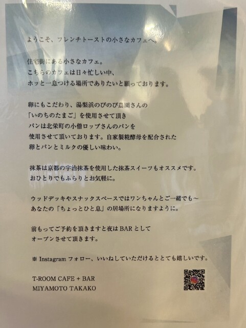 倉吉駅近くのT-ROOM cafe+bar。フレンチトーストや自家製プリン!昼はカフェ、夜は予約制バーで雰囲気が変わり楽しめます。
