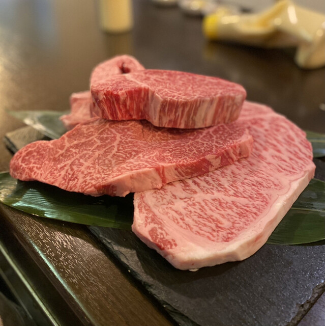 その後は今さら言うまでもなく鉄板の美味しさの普通のハンバーグ、目の前でバーナーで炙ってくれるランプの炙りと続き普通の人ならもうお腹もかなりいっぱいになっているかもですがココからさらにメインのステーキ、柔らかく旨みがしっかりのシャトーブリアン、しっかりとした脂の甘みが堪能できるバラ、赤身と脂身のバランスが良く上品な味わいのトモサンカクとどれも文句なしですね。