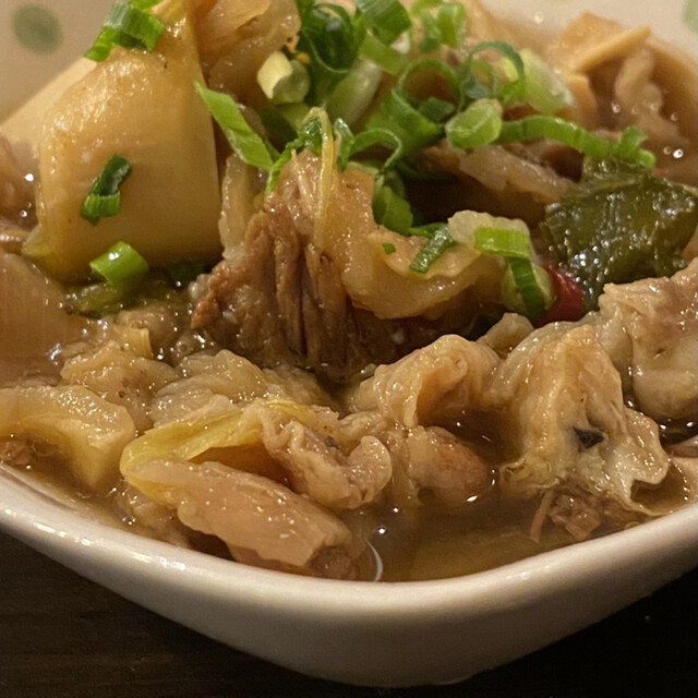 まずは台湾ポテサラ、とろとろで時折感じられるゴロっとした芋感のポテサラはそれだけでなかなかのものですが、上に乗っている台湾ミンチもコレに実に相性バッチリ、ポテサラと台湾ミンチの組み合わせはあまり見かけなかったですがコレはアリ寄りのアリですね。