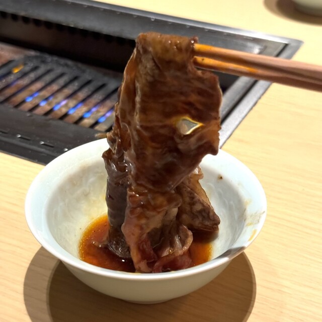 そしてお肉ももちろん素晴らしいものばかり、赤身ユッケは松阪牛と西三河の三河満月の卵を使用していて、濃厚に感じられるお肉の甘みに同じく濃厚な卵、それに甘いタレの味が絶妙に絡みあって美味しいです。