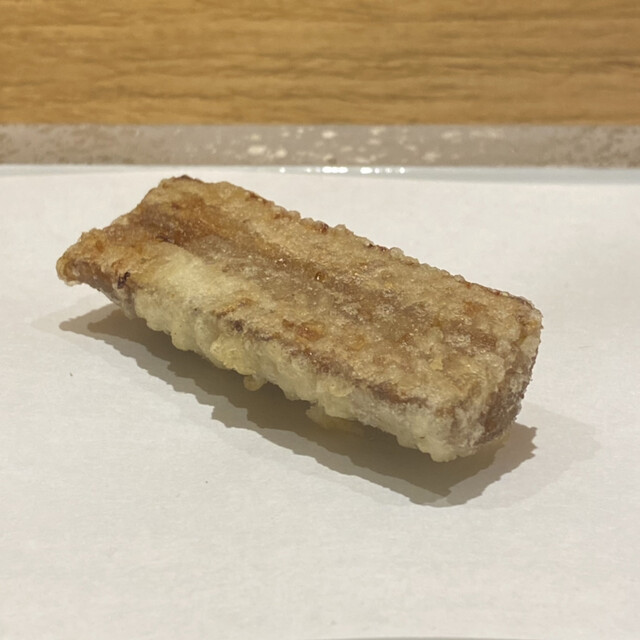 この日は毛蟹の甲羅盛りを目玉に八寸にお造り、天ぷら、そしてもちろんお蕎麦もしっかりと楽しめる内容の贅沢な内容のコース、お造りは桜鯛にヒラメ、とり貝、甘エビの昆布締め、天然ふぐのにこごりなどでしたが特におもしろかったのはヒラメ、4日目と12日目という熟成度合いが違う2種類の食べ比べで同じヒラメでも全然違いますね。ワタクシの好みは12日間熟成させた方、もっちりした食感とともにギュッと凝縮されたようなしっかりした旨みが感じられてすごく美味しいです。