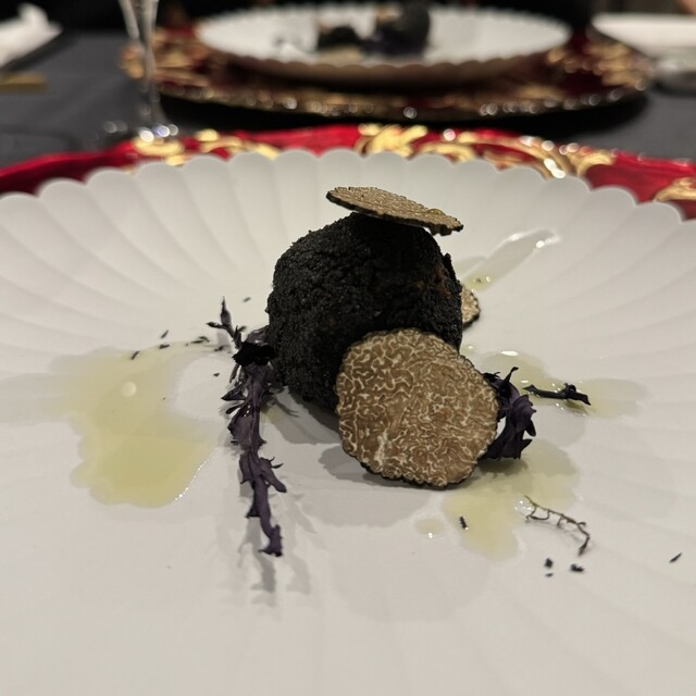松阪牛ヒレの塊薪焼き、イタリアマルケ産黒トリュフと希少ビアンケットトリュフ