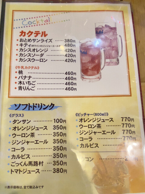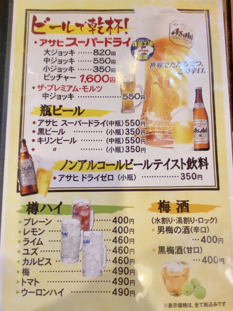 瓶ビールはメニューにはSDとしか書かれてないけどキリンラガーもあり。