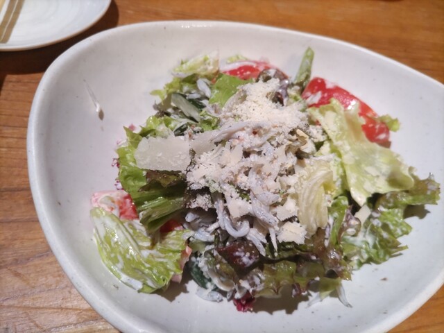 イタリアンランチのラストオーダー14時半、950円、サラダ、パン、ドリンクつき。