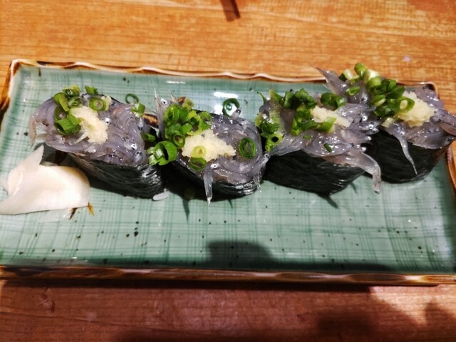 のどくろすし、3貫のってる、焼き目があぶりしてて塩でもよい。