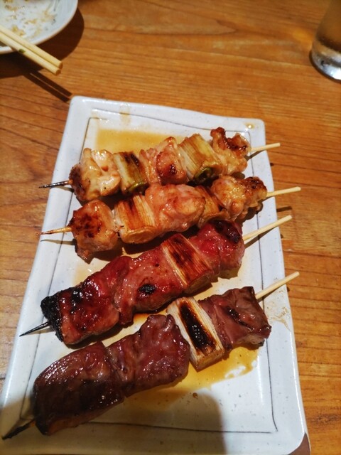 焼き鳥、もも2本、ハツ、かしら、うまうま!提供まで時間はかかる、焼き鳥は種類が選べる、たれにした、