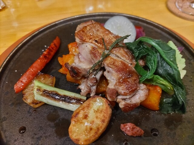 メインは電話でチョイス、肉にした、このときは珍しい鴨肉でした、鴨肉好き、