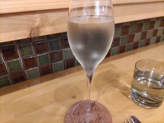 飲み物、、ワイン3点セットがあり。これにした、まずは、スパークリングから提供された、