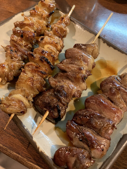 結局、2人で串焼き、串揚げを計25本。 鶏釜飯1杯、日本酒とサワー一杯。