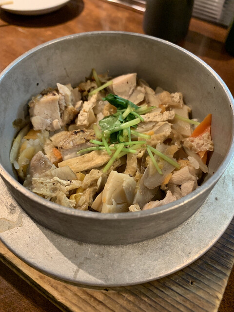 鶏五目釜飯:〆に釜めしはやはり贅沢な気分。二人で分けて美味しかったです♪