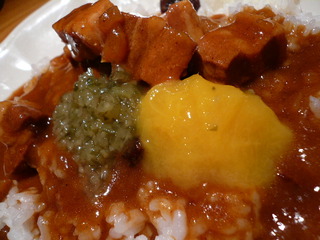 旦那さんは、タンドリーチキン添えのマンゴーカレー。