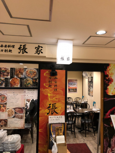西安料理刀削麺張家貿易センタービルのB1Fにあります。