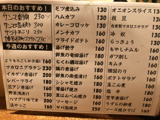 鮮魚の竜田揚げ180円 この竜田揚げがメチャクチャ美味い!これで180円はかなりお得です! ビールの後はホッピーセット400円を注文。なかを2回お代わりしてお会計。1時間程度の滞在でしたが、合計1520円。気持ち良く家路につけました。ご馳走さまでした。