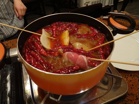 湯をテーブルに持ってくると、火鍋の麻辣なやつと変わらないんじゃないの?