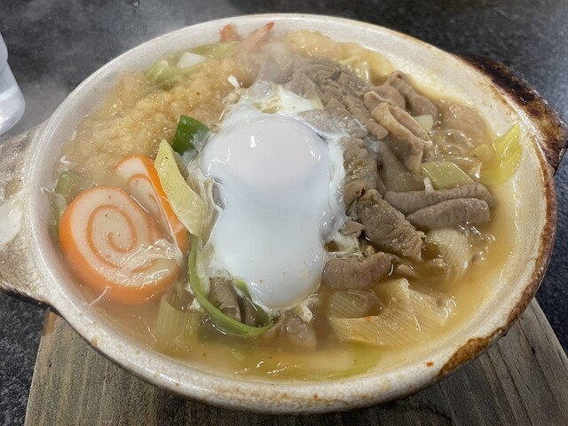 熱々のもつ煮込みうどん最高!