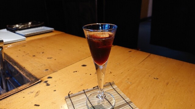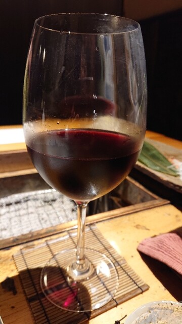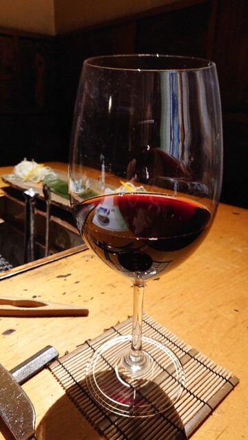 そして、肉にスイッチ。お酒も赤ワインにスイッチ。和牛のランプです。ご主人が、好みの焼き加減はそれぞれだからと、各々が焼いていただきます。焼き過ぎは禁物。いい肉はレアが一番。わさびに岩塩を混ぜたものを、少しのせていただきます。うんまーい!赤身に程良い脂。バランスがいいです。間々に添えられている玉ねぎのスライスをポン酢でいただくと、肉の旨さが引き立ちます。赤ワインに合います。
