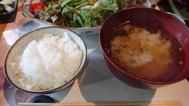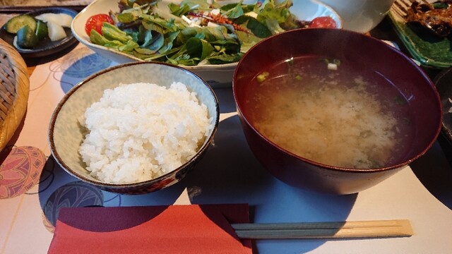 おいしいご飯は、宿の下の砂利道周辺に広がっている田んぼでとれたご主人ご自慢のお米。おいしくておかわりしちゃいました。